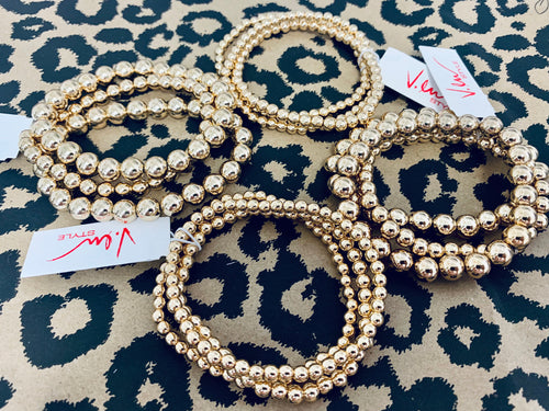Gold Ball Bead Bracelet Set of 3 (4mm)