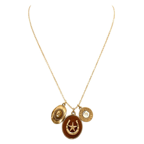 Western Charms Cowboy Star Shotgun Shell Gold Necklace