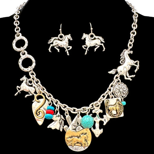 Southwestern Horse Aztec Navajo Vintage Charms Necklace