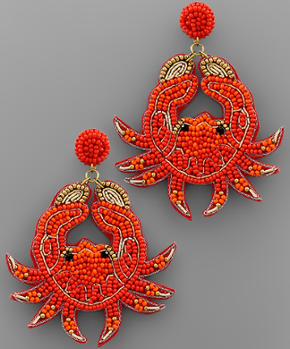 Red Crab Beaded Earrings
