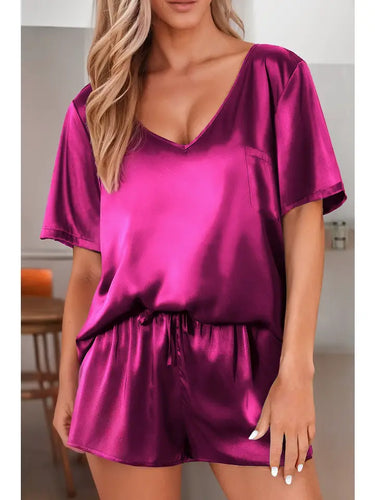 Satin Fushia Drawstring Short Set