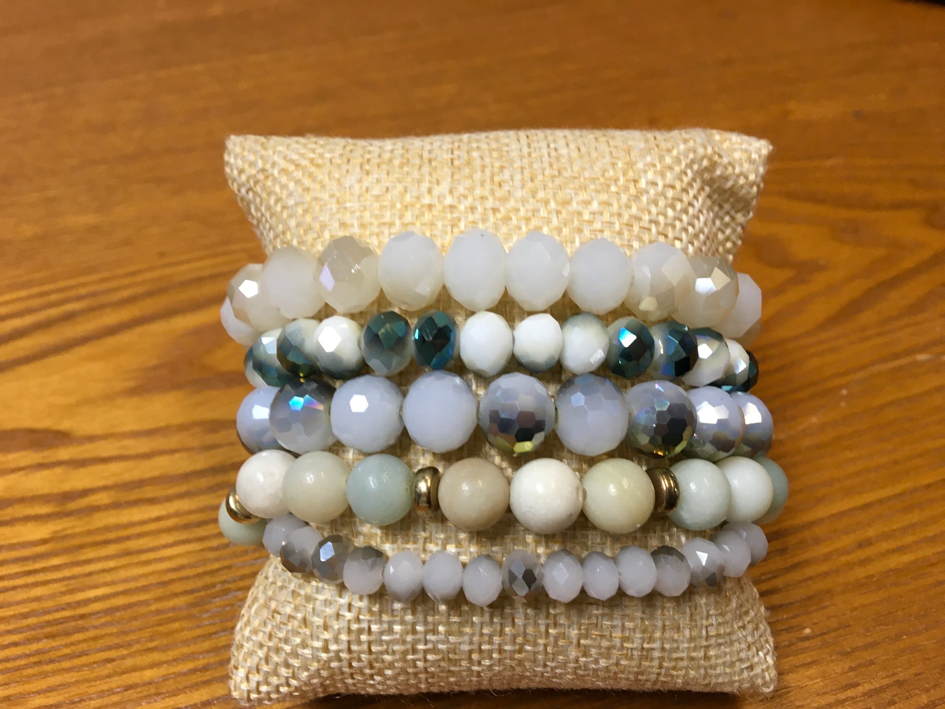 This Beautifully crafted stack bracelet consist of 5 semiprecious beaded bracelets. Mixture of large and small beads.